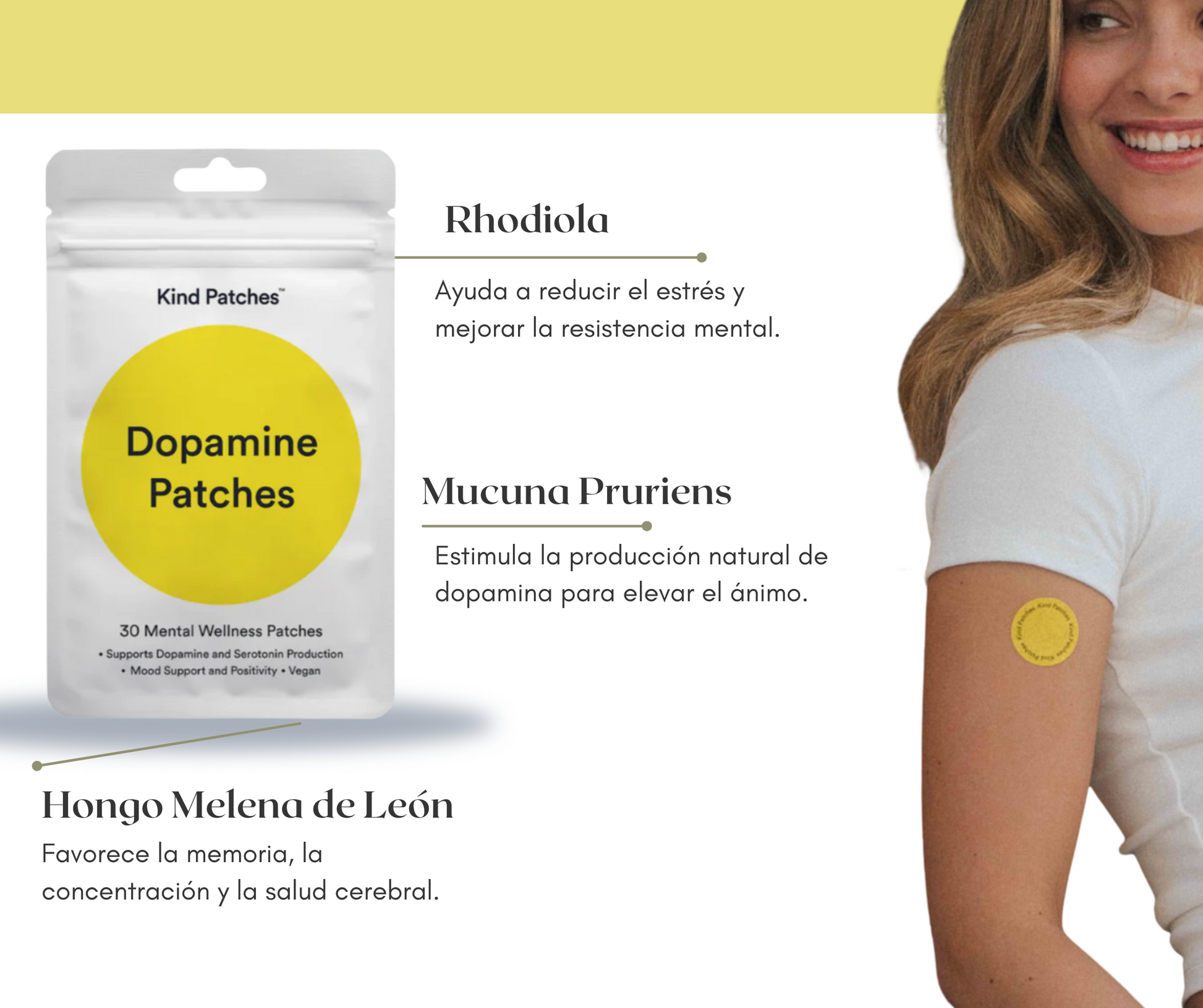 Parches naturales que apoyan la regulación de la dopamina, mejorando el estado de ánimo, la motivación y la concentración.