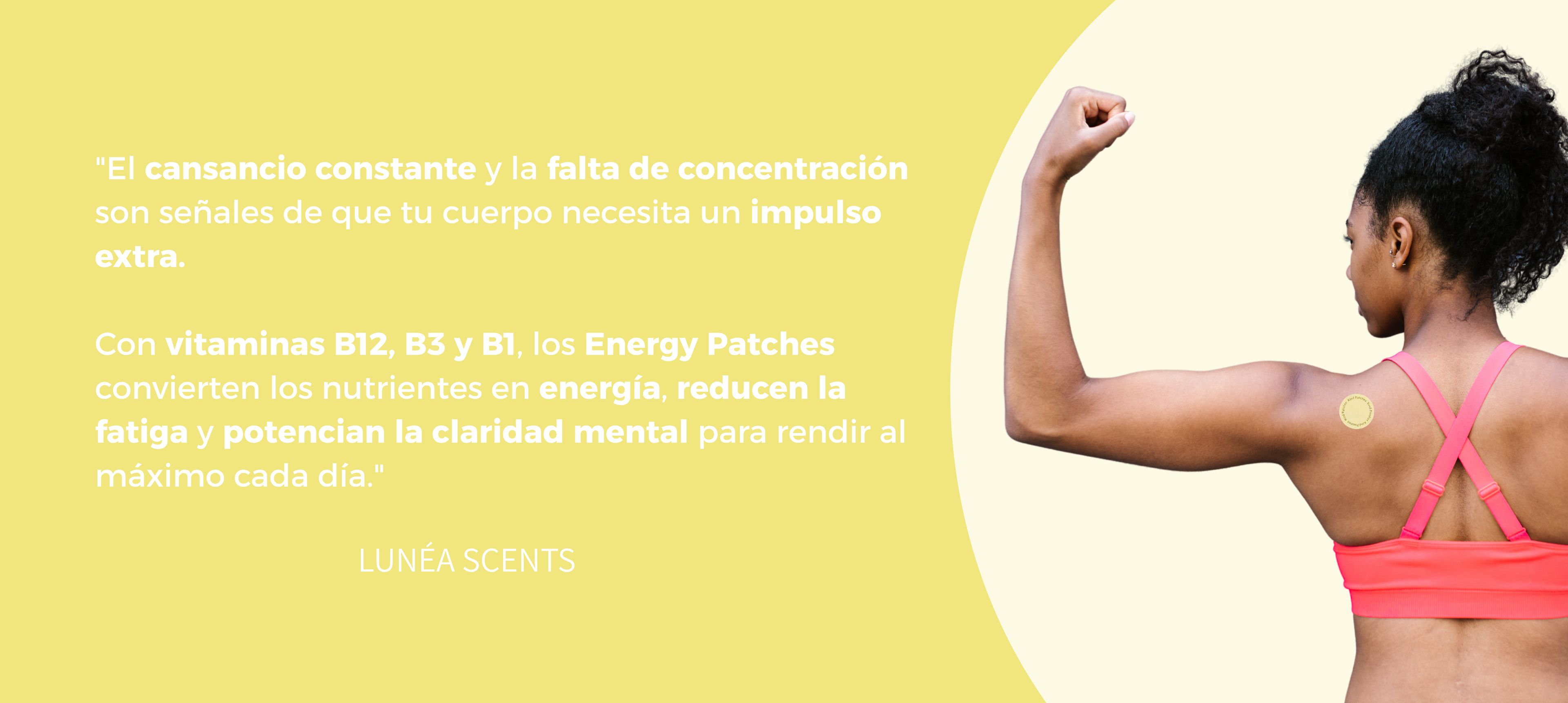 Los Energy Parches combinan vitaminas B12, B3 y B1 para apoyar el metabolismo celular, ayudando a mantenerte activo, productivo y con claridad mental durante todo el día.